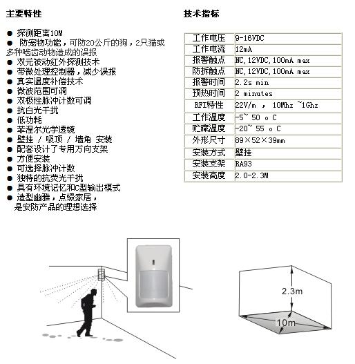 RK210PT雙元紅外被動移動探測器。防寵物型RK210PT探測器是專門設(shè)計用于家庭使用的,防范范圍10M。具有信號捕捉能力強,誤報、漏報率低,低功耗和真實溫度補償?shù)奶攸c。配專利菲涅爾光學透鏡,抗白光干擾。產(chǎn)品技術(shù)含量 高、制作工藝考究、外觀造型高雅。