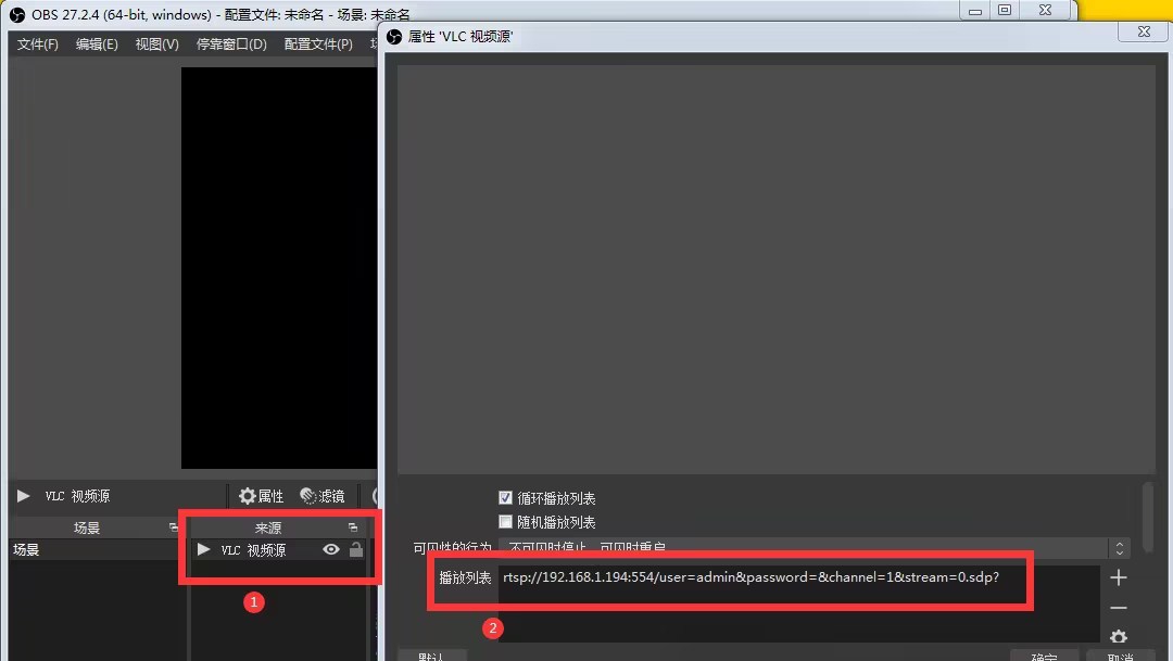 推流來源,即VLC,地址即上述設(shè)備的rtsp地址。