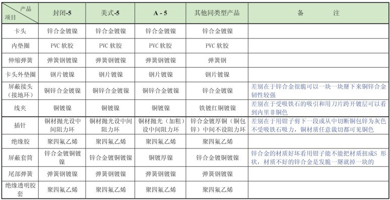 ???? 1.如果是普通的BNC頭(封閉式和美式),這種的線夾和插針是銅的(當(dāng)然也不排除市場上那些鐵針鍍銅或鐵質(zhì)的線夾),只有卡口彈簧和尾部彈簧(鋼材質(zhì))為帶鐵質(zhì)材料,其他部件為鋅合金,這種的BNC頭抗腐蝕能力一般般,外觀也很粗糙,我做過市場調(diào)查,這種的屏蔽層設(shè)計也不到位,在卡頭那里接觸不好(建議盡量不使用)。